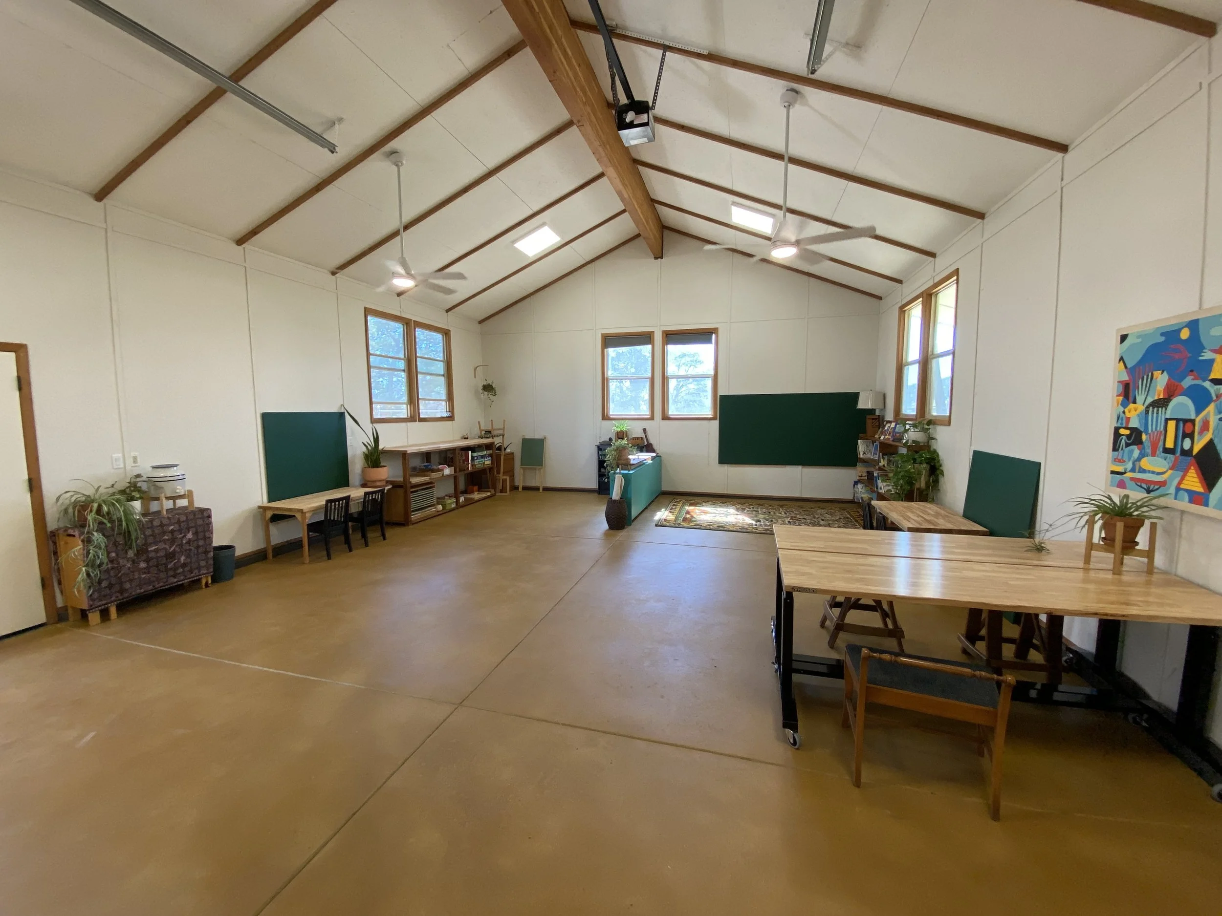Complementing the expanse of the outdoor campus, Watershed Schoolhouse offers a clean, multi-purpose indoor space that harkens back to a one-room community schoolhouse. Students can engage with academic materials, artwork, and more. The space also serves as an occasional community hub, allowing for spaces of intergenerational learning and real-world community connections.
